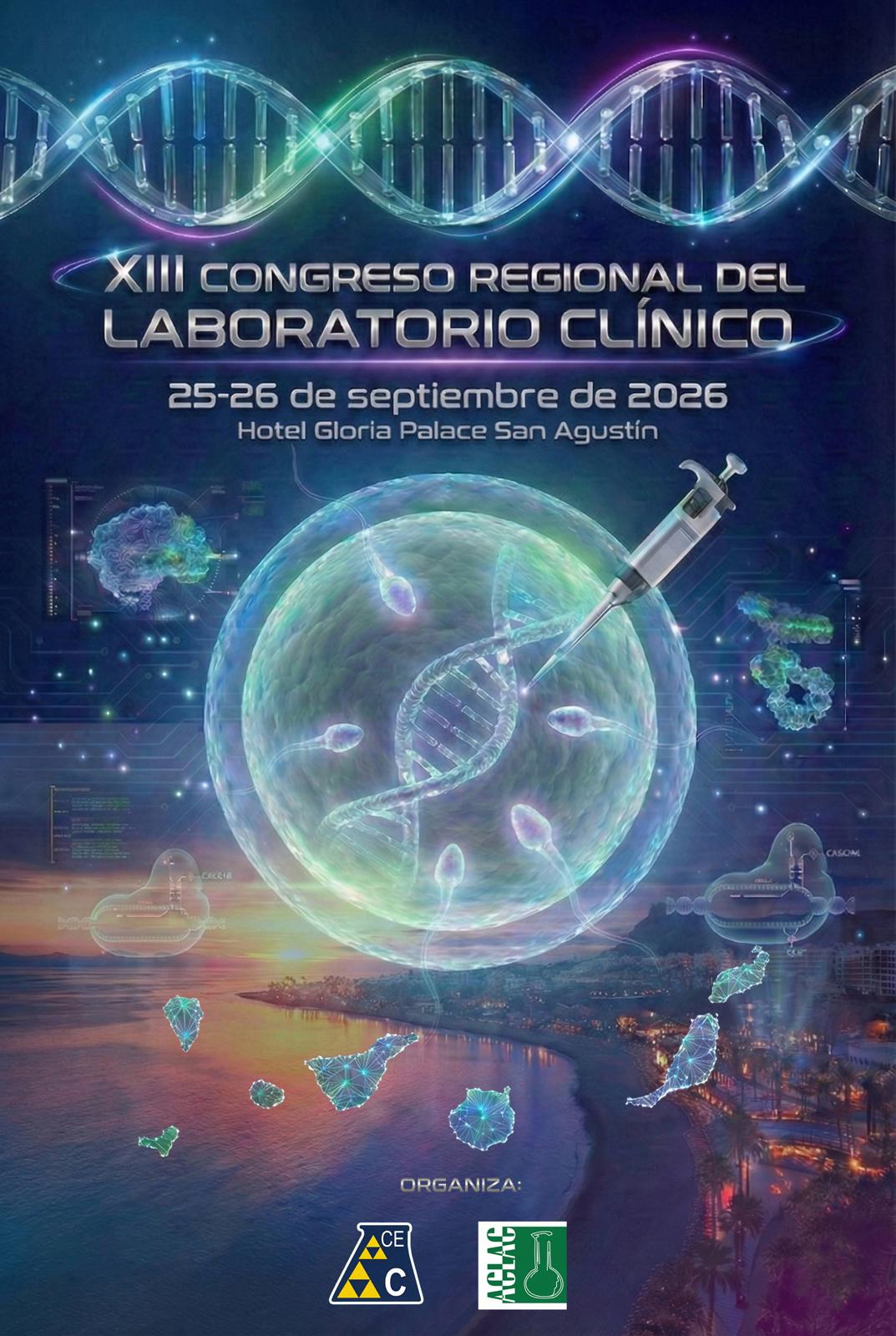 La Asociación Canaria de Especialistas en Análisis Clínicos (ACEAC) y la Asociación Canaria del Laboratorio Clínico (ACLAC) celebran conjuntamente el XIII Congreso Regional del Laboratorio Clínico, que tendrá lugar los días 25 y 26 de septiembre de 2026 en el Hotel Gloria Palace San Agustín.